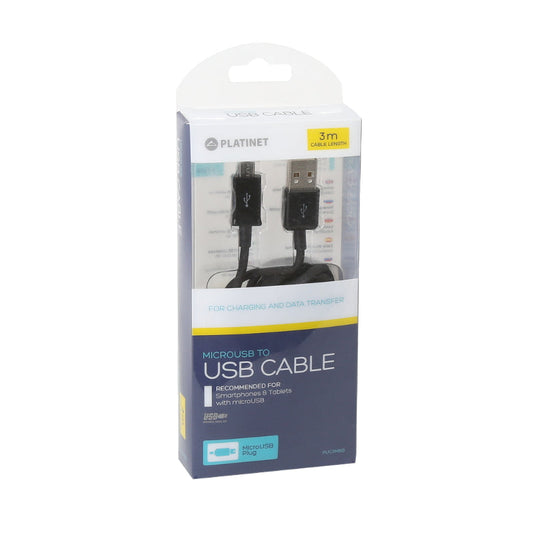 PLATINET CABLE MICRO USB A USB 3M 2.4A NEGRO BLISTER