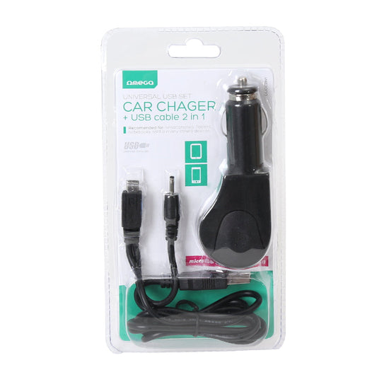 OMEGA CARGADOR DE COCHE 2xUSB 5V 2.1A + CABLE 2en1 (microusb + TABLET)