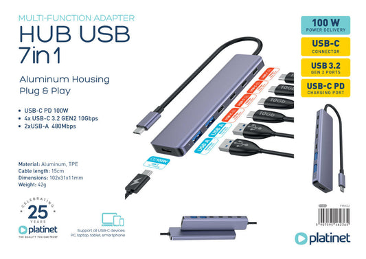 PLATINET HUB USB-C 3.2 7en1 HDMI 4K USB-A3.2/ USB-A2.0/USB-C PD 100W/ USB-C2.0/SD/MicroSD