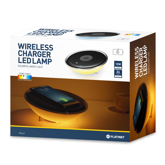 PLATINET LAMPARA LED MESA 7W TIPO BANDEJA + CARGADOR INALAMBRICO QI COLORES TACTIL