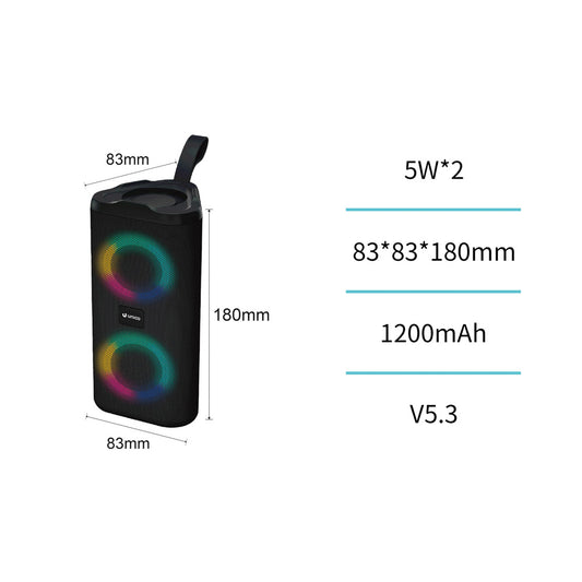 UNICO BS2769 ALTAVOZ BLUETOOTH 5.3 3W RGB LED MICROSD FM TIPO-C 300MAH MINI NEGRO