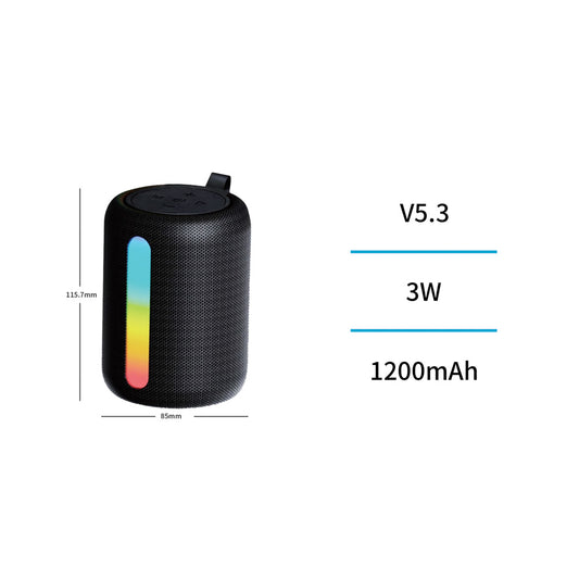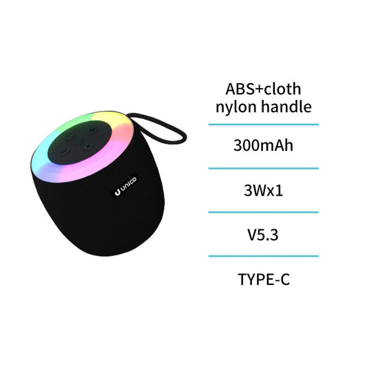 UNICO BS2767 ALTAVOZ BLUETOOTH 5.3 3W RGB LED MINI PORTABLE TELA 1200MAH TIPO-C NEGRO