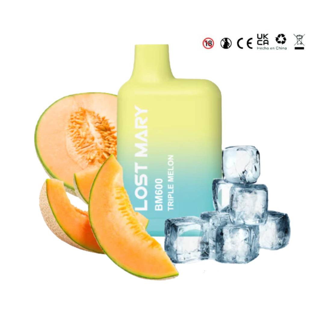 El vaper desechable Lost Mary BM600 2% Triple Melon destaca por su mezcla de sabores a melón dulce con un toque fresco. Este dispositivo recrea una combinación equilibrada de distintos tipos de melones, ofreciendo un perfil afrutado y jugoso que resulta reconfortante en cada calada. Con una concentración de nicotina del 2%, proporciona una experiencia suave pero satisfactoria para quienes disfrutan de sabores dulces y naturales.