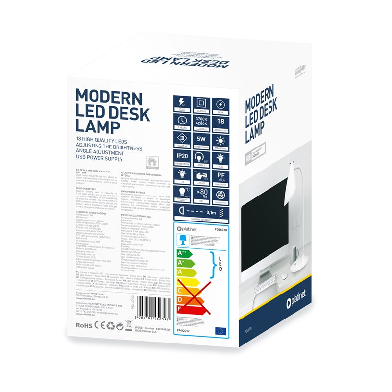 Con una potencia máxima de 5W, esta lámpara es práctica y funcional, además de tener un grado de protección IP20, lo que la hace adecuada para uso en interiores.