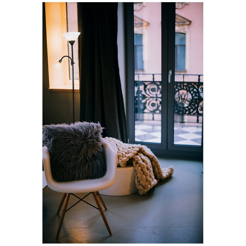 Con una altura total de 180 cm, esta lámpara es ideal para colocar junto a sofás o en rincones, ofreciendo una luz funcional y decorativa. Su diseño elegante y minimalista se adapta fácilmente a cualquier estilo de interior.
