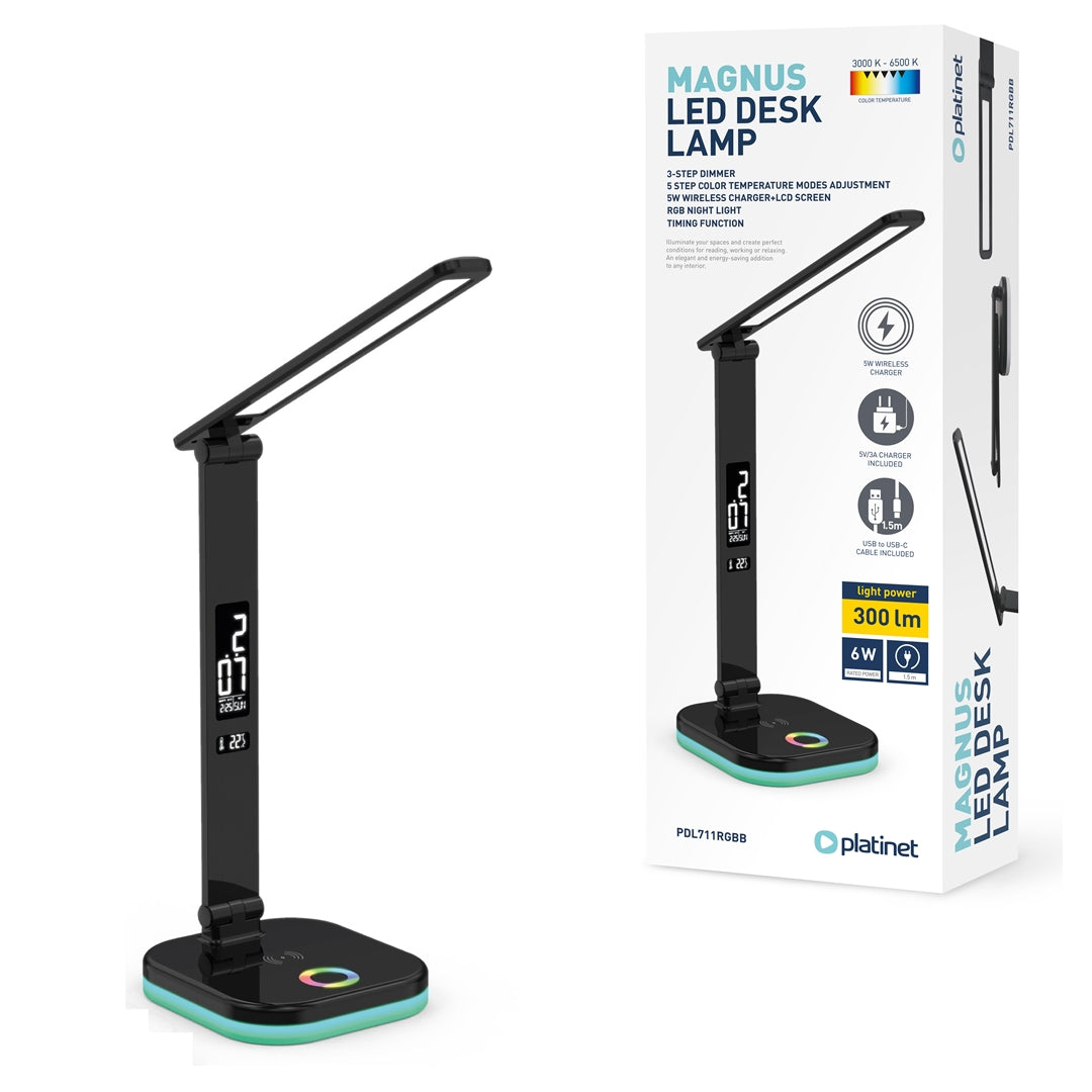Ilumina tu espacio y crea el mejor ambiente para leer, estudiar, trabajar o relajarte, con la lámpara LED PDL711RGBB de Platinet. Una solución económica y elegante para cualquier estancia de interior, con cargador inalámbrico incluido en la base para recargar tus dispositivos.