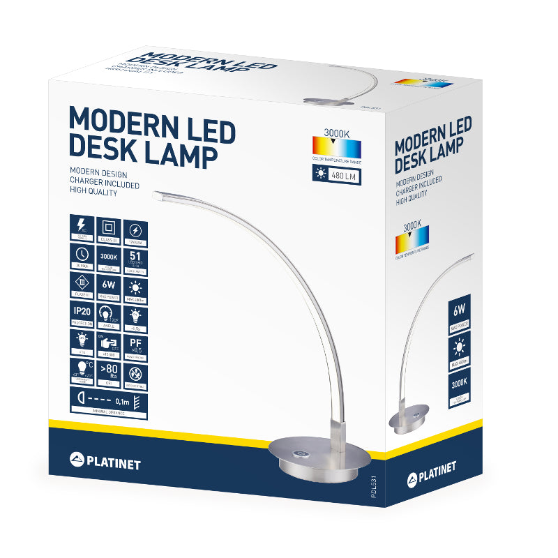 PLATINET LAMPARA LED CURVO ALUMINIO 6W 3000K 480LM