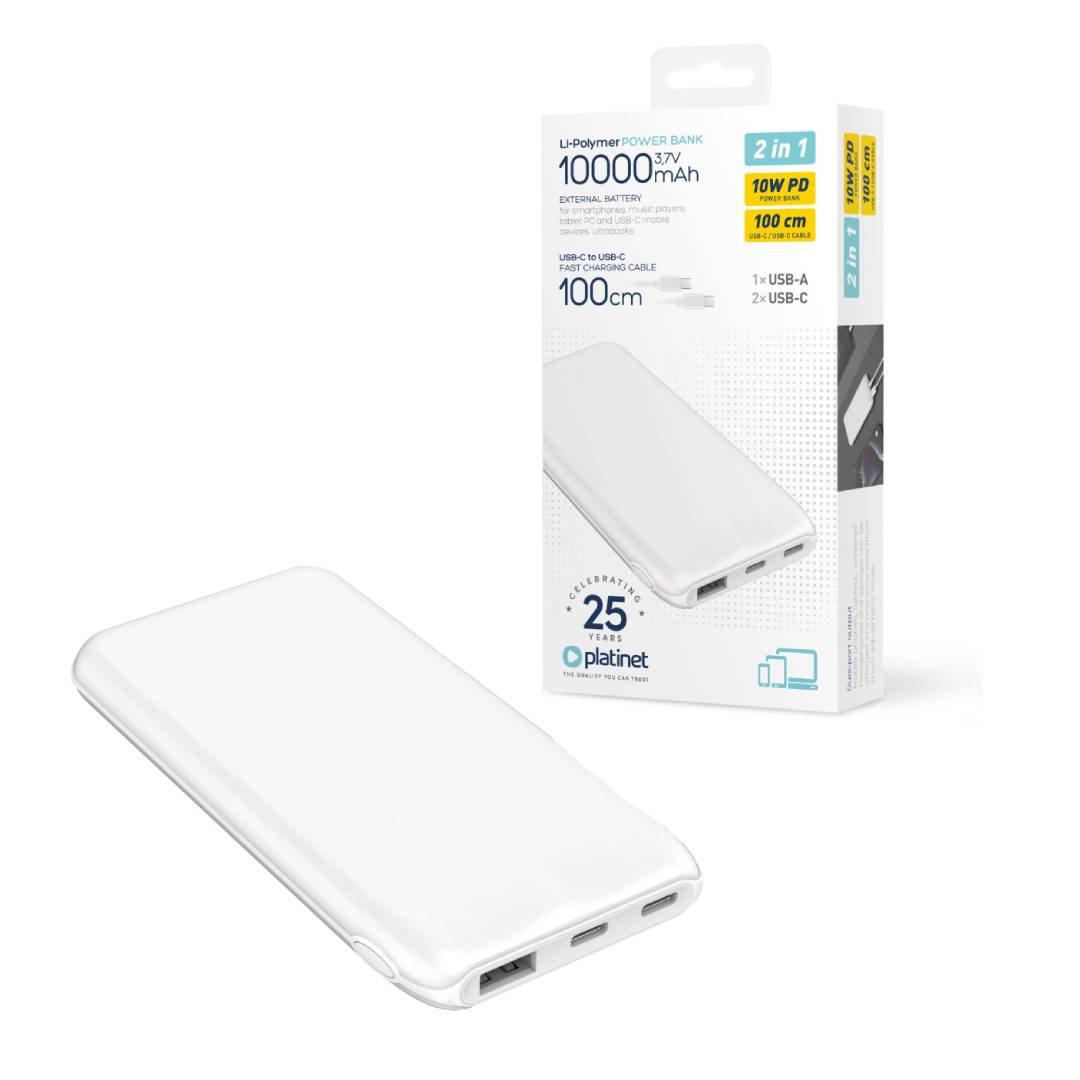PLATINET POWER BANK 10.000mAh 3,7V 37Wh 12W 2xUSB-C 1xUSB-A BLANCO PMPB1010W
