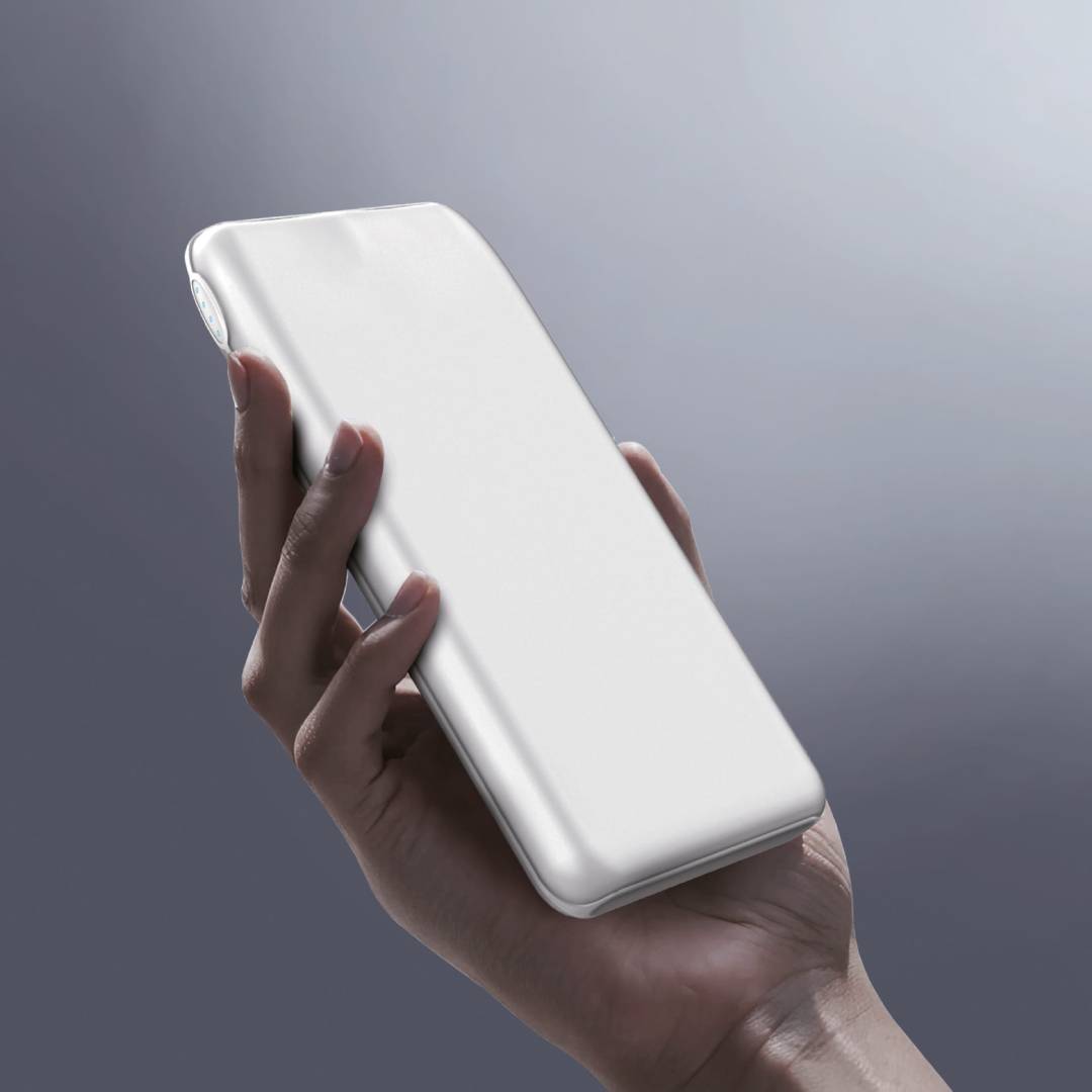 Esta batería externa de 10000 mAh está diseñada para cargar rápidamente smartphones, tablets y otros dispositivos. Ofrece múltiples opciones de salida, incluyendo un puerto USB-A (5 V/2,1 A) y dos puertos USB-C, uno de ellos para la recarga de la propia batería.