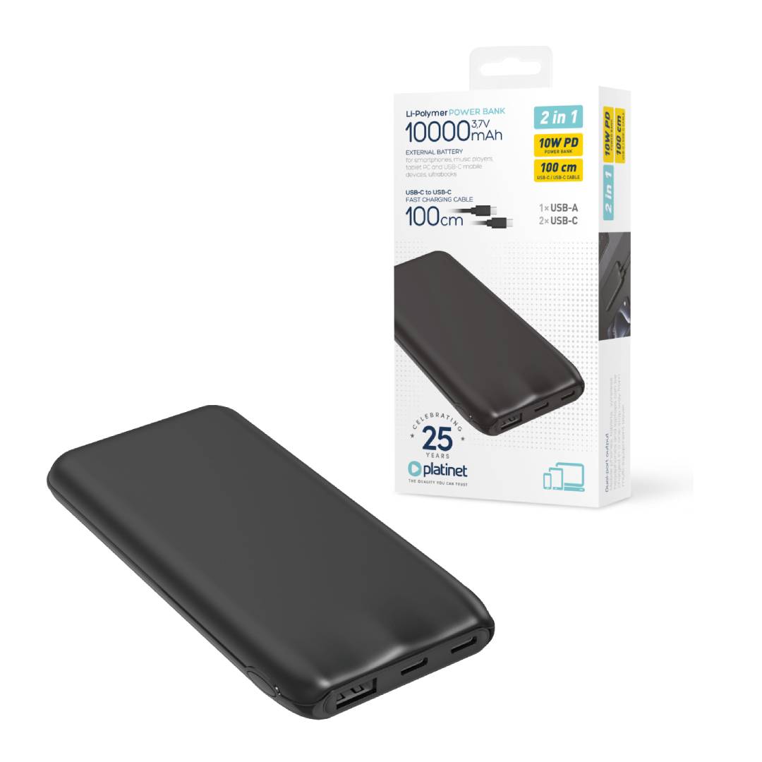 PLATINET POWER BANK 10.000mAh 3,7V 37Wh 12W 2xUSB-C 1xUSB-A NEGRO PMPB1010B
