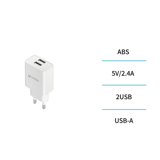 UNICO HC1161 CARGADOR 2 USB A 2.4A BLANCO