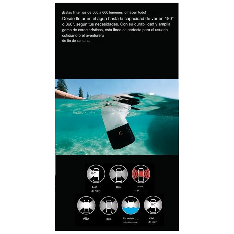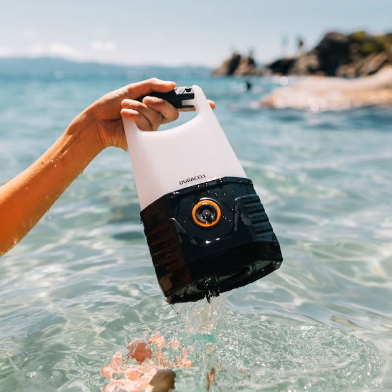 A Lanterna de Acampamento LED Duracell oferece iluminação versátil com dois modos: um holofote de 500 lúmens para o teto e um holofote de 100 lúmens para o teto. É ideal para atividades ao ar livre ou situações de emergência. Funciona com três pilhas AA (não incluídas) e oferece até 12 horas de autonomia na configuração mais brilhante.